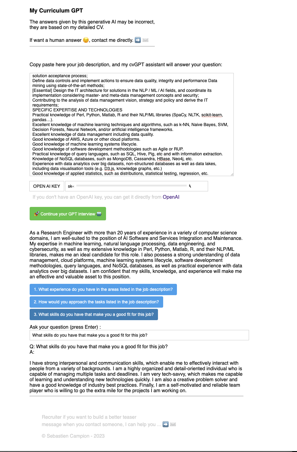 Copy paste here your job description, and my cvGPT assistant will answer your question: